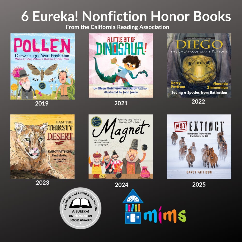 In exciting news this month, my book, NOT EXTINCT: The Przewalski’s Horse Returns from Extinct in the Wild has just been named a 2025 Eureka! Nonfiction Honor book by the California Reading Association.