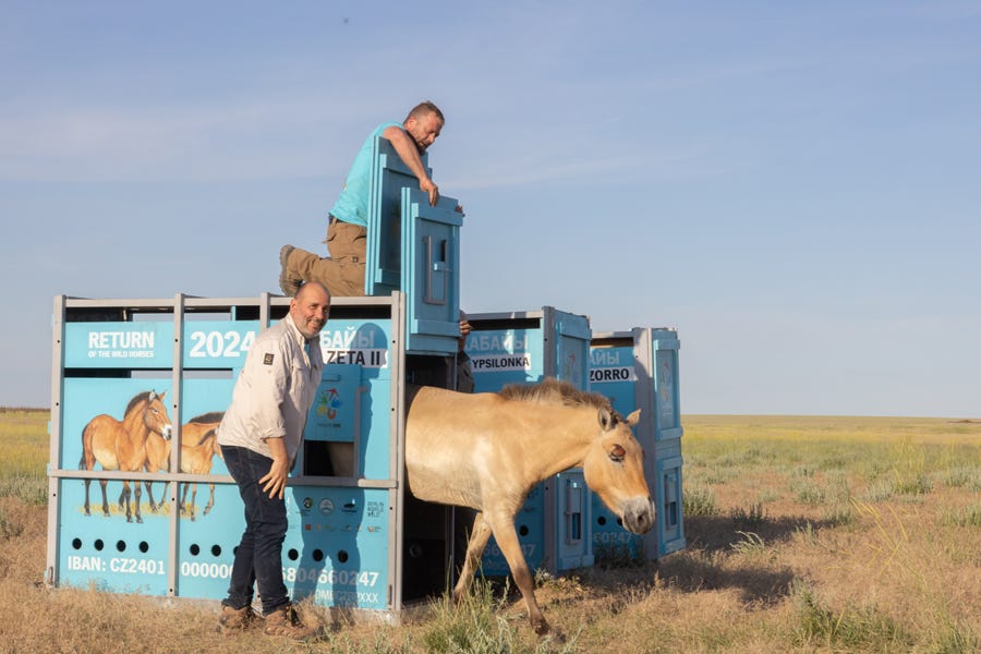 During the 2024-2025 school year, we hosted a high-school exchange student from Czechia. In September, 2025, we visited Tomas in Prague to reconnect and meet his family. Before we went, I learned about the Przewalski’s (p-zhe-VAL-ski) Horses (also known as the P-horse), and the Prague Zoo’s project to return them to the “golden steppes” of Kazakhstan.